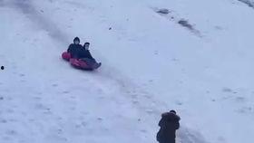还有这位小姐姐,她在滑雪时,不小心踩到了一块冰,整个人就像一颗“炮弹”,直冲向雪地。结果,她不仅摔了个四脚朝天,还把旁边的雪堆给撞得飞了起来,场面那叫一个搞笑。